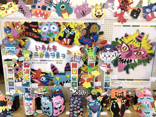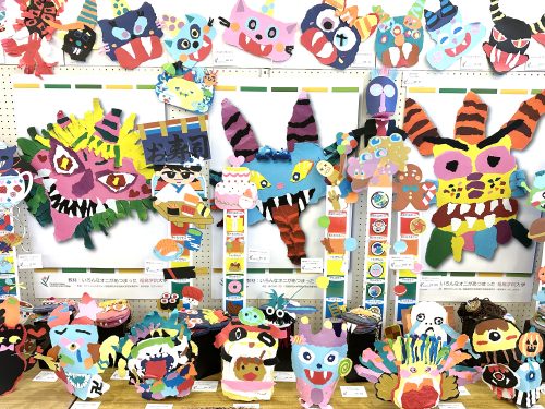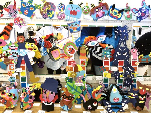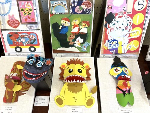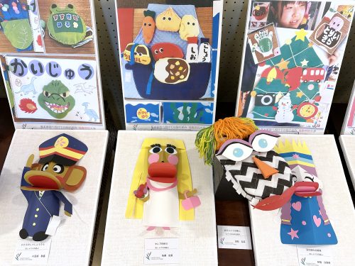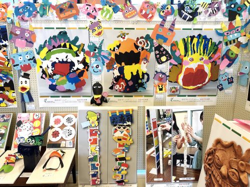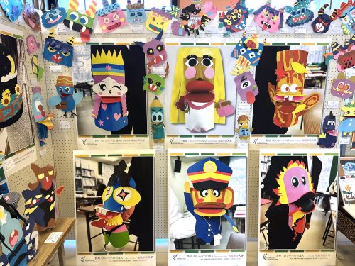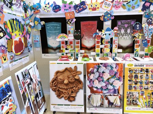 作品は「幼児と表現(造形)」(1年生)、「保育内容指導法 表現」(2年生)、「保育内容研究(造形教材制作)」(2年生)など、表現(造形)に関する授業科目で学生が制作したものです。