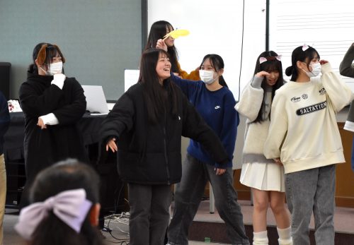 保育学科1年次「特別研究Ⅱ(保育者の音楽遊び)」では、半期を通じて保育現場でのダンスや手遊び、楽器遊びなどの音楽遊びから音楽療法について学びを深めています。