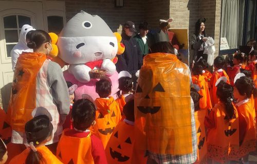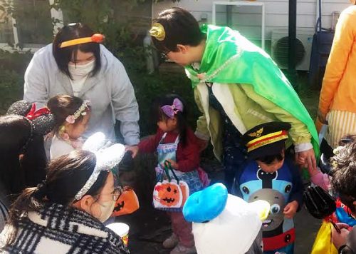学生たちも「ハッピーハロウィーン!」と声をかけながら楽しくお菓子を配布していました。