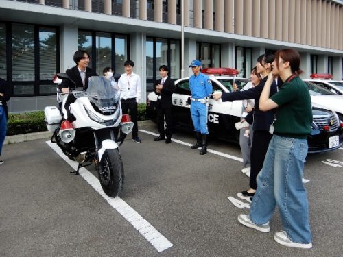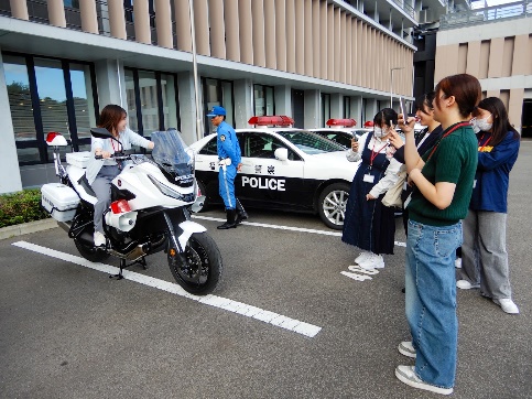 発表会終了後には、「交通管制センター」や「全国初の水素パトカー」「白バイ」の見学が行われ、記念撮影も実施されました。