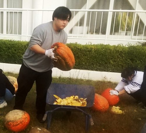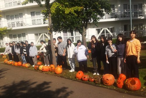 今年は特に大きなカボチャが多く収穫できたため、例年にも増して迫力ある大作が数多く完成しました。学生たちは工夫を凝らしながら制作に取り組み、広場には個性豊かなランタンが並び、ハロウィン気分を盛り上げました。