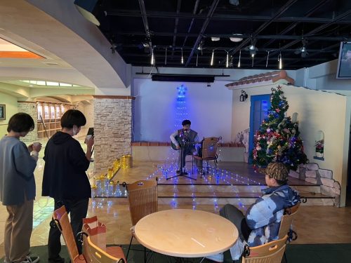今回は豪華景品が当たる抽選会に加え、ホットドリンクの提供コーナーや学友会メンバーによるギター演奏も行いました。