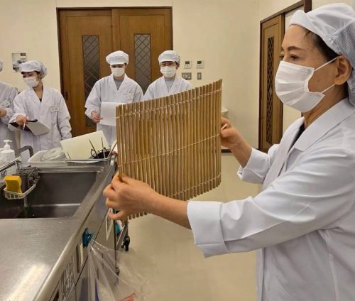 巻き寿司の回で学んだ巻簾の取扱方法を振り返りながら説明がおこなわれました。
