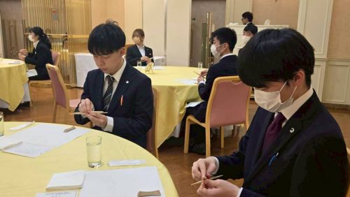 今回は、ホテル福島グリーンパレスにて11/13(木)、11/20(木)の2週にわたり、日本料理と西洋料理のテーブルマナー演習をおこないました。