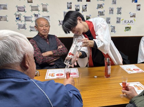 今年度は露茜の収穫から参加させていただきました。今年度で3年目となるお披露目会では地域の皆さんや酒販店の皆さんに知っていただき、販路拡大を目指して新酒の発表会を大天狗酒造(本宮市)で行いました。
